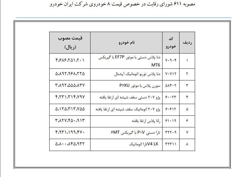 پیگیری ها حاکی از آن است که این خودروها انواعی از دنا، پژو ۲۰۷ و تارا است که به زودی قیمت آنها به صورت رسمی توسط شورای رقابت اعلام می‌شود.