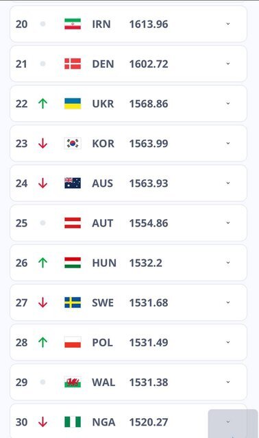 به گزارش گروه ورزشی حیات، تازهترین ردهبندی فیفا امروز (١۶ فروردین) منتشر شد و فوتبال ایران با ١۶١٣.٩۶ امتیاز به ترتیب در ردهبندی جهانی بالاتر از دانمارک، اوکراین، کرهجنوبی و استرالیا در جایگاه بیستم ایستاده و همچنین در قاره آسیا نیز همچنان در جایگاه دوم قرار گرفته است.