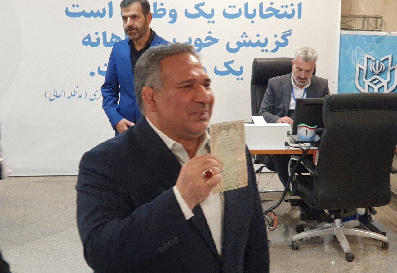 وی پس از ثبت‌نام، در جمع خبرنگاران حاضر شد و گفت: تا این لحظه منتظر حضور افرادی همچون آقای مخبر بودم و با توجه به نیامدن ایشان تا این لحظه، برای ثبت‌نام حضور پیدا کردم. البته در صورت حضور آقای مخبر به نفع ایشان کنار می‌روم.