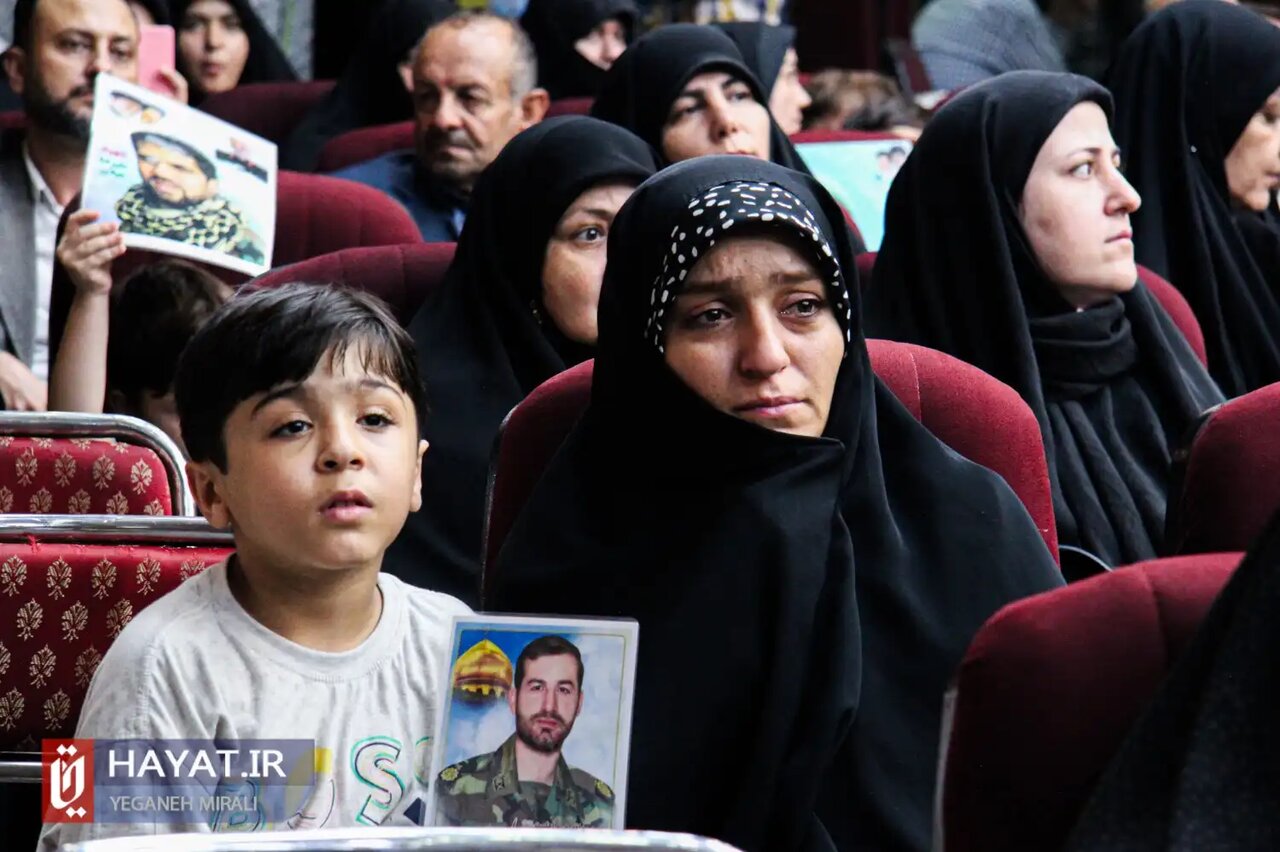 در ادامه مریم رضایی، همسر شهید مدافع حرم، علی اکبر عربی در جایگاه قرار گرفت و گفت: در اثر ظهور گروههای تروریستی و تکفیری مورد حمایت آمریکا علاوه بر تهدید امنیت مردم و کشور عزیز ما ایران، بالاترین سطح از ناامنی، جنایت، تخریب، تجاوز و نسلکشی در منطقه غرب آسیا ایجاد شده بود؛ در این ایام برای جلوگیری از نفوذ و تجاوز داعش و گروههای تکفیری به داخل کشور که از مرزهای غربی تا منطقه جلولا عراق در حد فاصل قصر شیرین و گیلانغرب نفوذ کرده و مستقر بودند و دست به انجام عملیاتهای تروریستی در اقصی نقاط کشور عزیزمان میزدند، همچنین بخش عمدهای از شهرها و روستاهای عراق و سوریه را تصرف کرده بودند؛ مجاهدان مهاجر و ضد تروریسم ایران اسلامی با فرماندهی سردار آسمانی سپهبد شهید حاج قاسم سلیمانی با دعوت مستشاری و درخواست رسمی دولتهای عراق و سوریه برای مبارزه با مزدوران نیابتی و تروریستهای تحت امر آمریکا اعزام و به جهاد برخاستند، گروهک تروریستی مذکور را مجبور به عقبنشینی از پشت مرزهای غرب کشورمان کردند، سپس به دور کردن این حرامیان از اطراف عتبات مقدس و به کمک نیروهای مردمی و ارتش عراق و سوریه شتافتند.