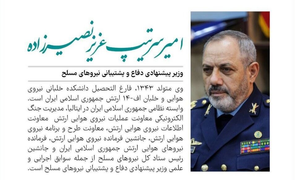 ۱۰- عزیز نصیرزاده؛ وزارت دفاع، پشتیبانی و نیروهای مسلح