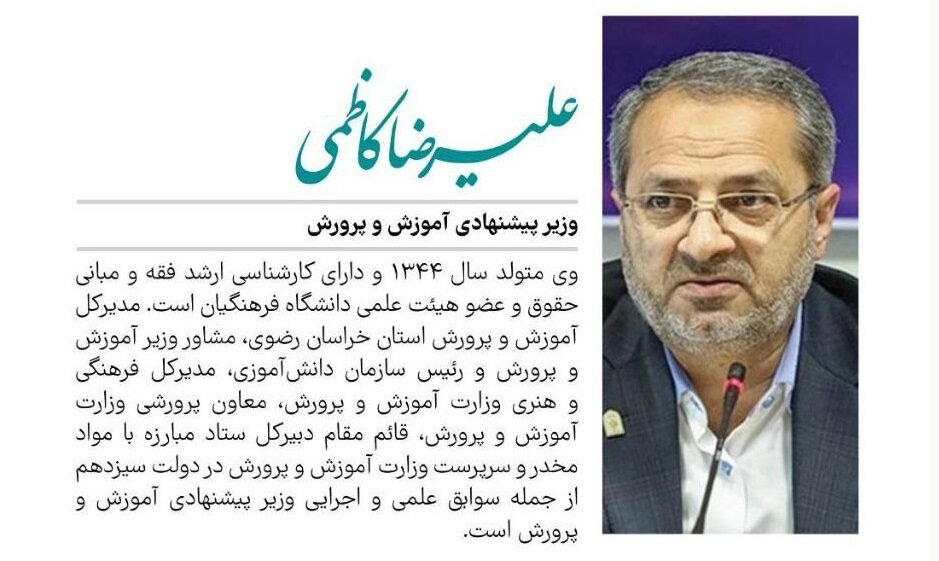 ۱- علیرضا کاظمی؛ وزارت آموزش و پرورش